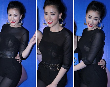 Maya lấp ló nội y ren sau lớp áo mỏng trong buổi giới thiệu album Anh với em là một chiều ngày 29/1 tại TP.HCM. |