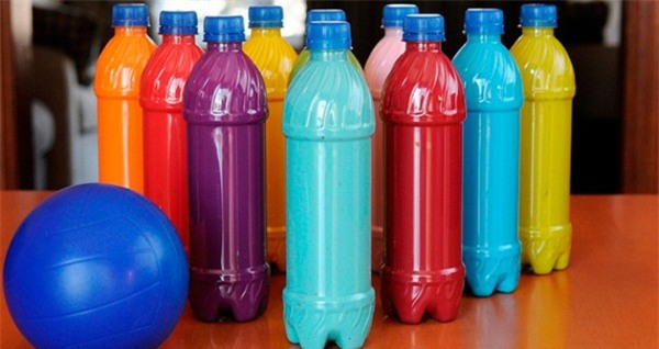 Những chiếc chai nhựa là một gợi ý hoàn hảo cho trò bóng gỗ trong mùa hè này, nhất là khi bạn đổ thêm vào bên trong chúng chút nước với những màu sắc khác nhau. Để làm nên những chai nhựa đủ màu như vậy cũng vô cùng đơn giản. Bạn chỉ cần đổ chút sơn và nước vào chai sau đó lắc đều lên để màu bám vào thành chai, bạn nên đổ lượng đủ để sơn phủ kín thành chai. Sau đó phơi khô và đậy nắp, dùng keo cố định nắp chai lại.