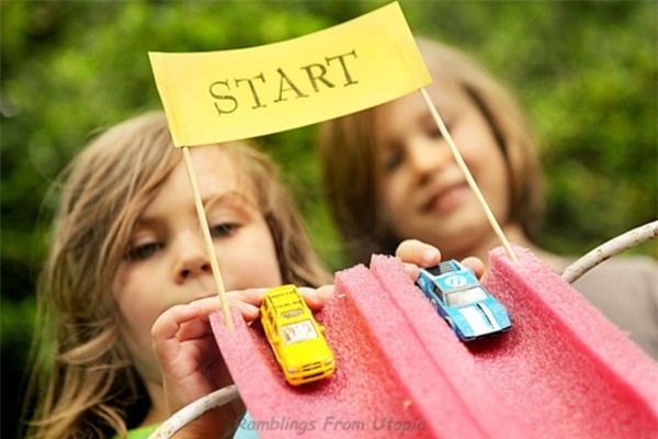 với những chiếc ô tô đồ chơ bé xíu và vài dụng cụ dễ tìm khác nữa, bố
