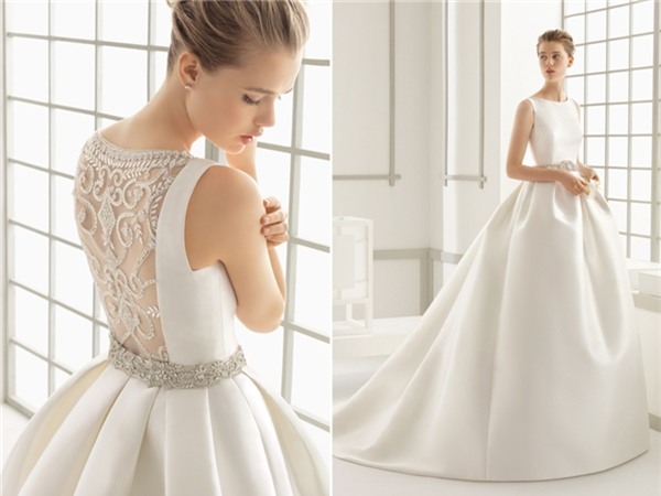 Chiếc váy cưới thuộc hãng Rosa Clara chứng minh rằng đẳng cấp không ở những viên đá đính kèm mà nằm ở sự tinh tế, đơn giản. Chất liệu vải sang trọng và những nếp gấp hoàn hảo khiến cho người mặc trở nên cực kì lộng lẫy. (Ảnh:Internet)