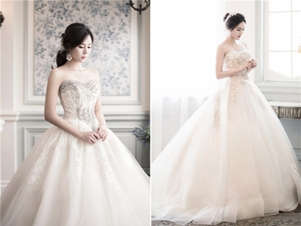 Lấy ý tưởng từ những mẫu váy áo của các công chúa, công nương, hãng W.H. Chen Couture cho ra đời thiết kế cổ điển nhưng vẫn giữ nét hiện đại với chi tiết xuyên thấu ở phần vai và lưng. Không ai có thể chối bỏ nét kiều diễm, quý phái của bạn khi ướm vào thiết kế này. (Ảnh:Internet)