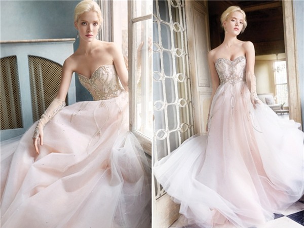 Một mẫu thiết kế khác của hãng Galia Lahav nhưng lại mang vẻ cổ điển, "kín đáo" hơn. Những cô nàng theo đuổi phong cách nhẹ nhàng, đơn giản nhưng vẫn không thiếu phần quý phái thì chiếc váy này là một sự lựa chọn hoàn hảo. (Ảnh:Internet)