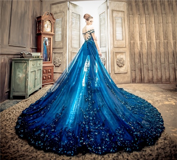 Thiết kếcủa No.9 Wedding sẽ giúp bạn một lần "hóa thân" thành nữ hoàng biển cả. Màu xanh biển táo bạo kết hợp chân váy ngắn sẽ khiến bạn "quyến rũ đến chết người". (Ảnh:Internet)