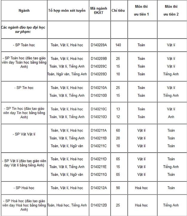 Theo thông báo, Trường ĐH Sư phạm Hà Nội tuyển sinh dựa vào kết quả kỳ thi THPT quốc gia tại các cụm do các trường đại học chủ trì và xét tuyển theo từng ngành.