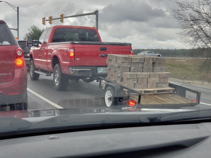 Chuyển hết đống gạch vào thùng sau của chiếc xe bán phải là một giải pháp đúng đắn hơn nhỉ? (Ảnh: brightside)
