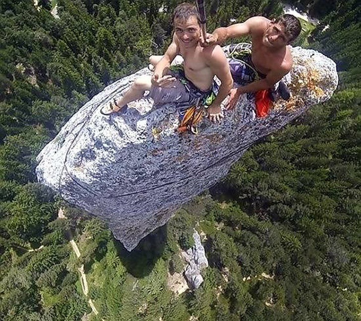 Chụp ảnh xong rồi họ sẽ leo xuống bằng cách nào nhỉ? (Ảnh: brightside)