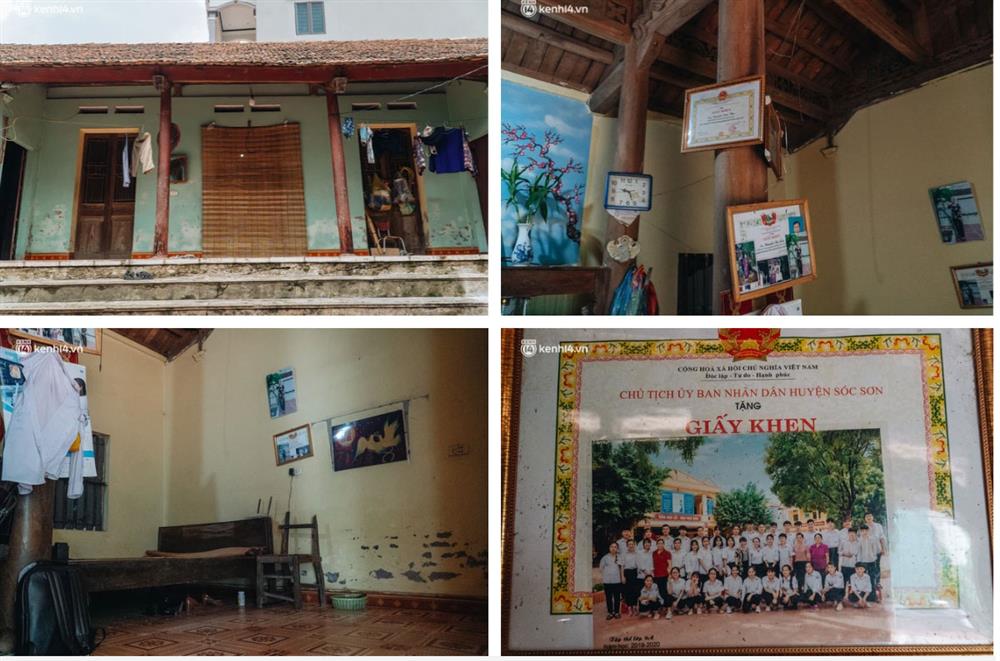 Hai mẹ con anh Thơ trong căn nhà cấp 4 tại thôn Kim Hạ, xã Kim Lũ, huyện Sóc Sơn