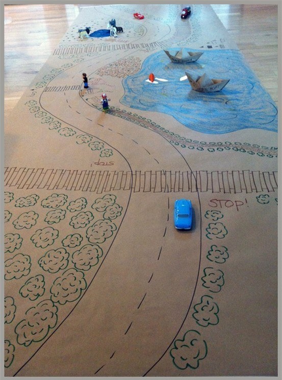 1. Một mô hình được vẽ trên giấy xi măng hoặc thùng các-tông như thế này sẽ khiến bé mê mẩn cả buổi mà không làm phiền đến cha mẹ.