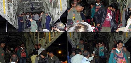 Máy bay C-130J của Không quân Ấn Độ đã đưa nhiều công dân nước này mắc kẹt ở Nepal về Delhi đêm qua. Ảnh: Twitter |
