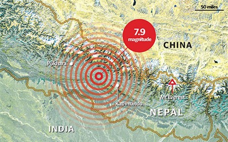 1.457 người đã chết sau khi trận động đất mạnh 7,9 độ Richter tác động tới Nepal và các nước láng giềng. Phó thủ tướng Nepal Bamdev Gautam ban bố tình trạng khẩn cấp và kêu gọi sự giúp đỡ của thế giới.