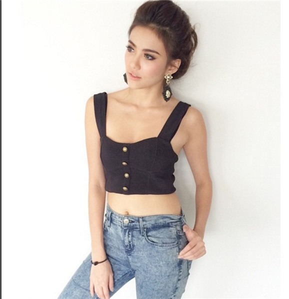Cô tự tin và trẻ trung khi ra phố với crop - top và jeans ngắn hết nấc.