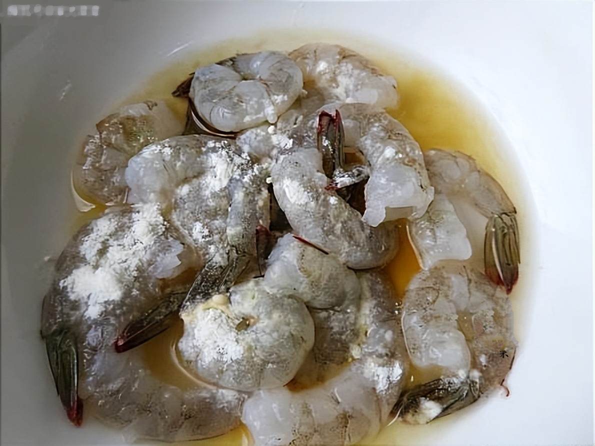 Cách thực hiệnBước 1: Đầu tiên loại bỏ vỏ, đầu và chỉ tôm rồi rửa sạch, để ráo nước. Sau đó cho 1 thìa tinh bột và 1/2 thìa rượu nấu ăn vào, trộn đều và ướp trong 10 phút.
