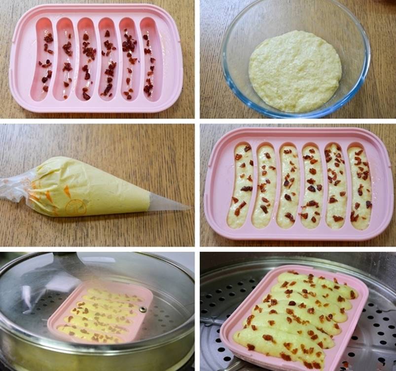 Bước 5: Cho vào nồi hấp với nước lạnh, vặn lửa lớn, hấp trong 15 phút. Đun nhỏ lửa trong 3 phút. Bánh nở lên rất đẹp. Sau khi nhấc khuôn bánh ra, úp ngược xuống để lấy bánh ra khỏi khuôn. Về phần tạo hình, bạn có thể sử dụng bất kỳ hình thù nào bạn muốn.