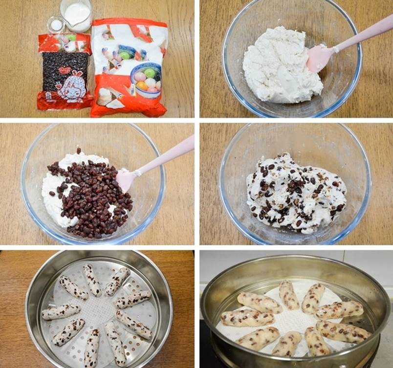 Lời nhắn: Khi nhào bột, cho nước vào bột nếp và thêm sữa với lượng nhỏ nhiều lần để tạo thành khối bột không dễ bị biến dạng. Đường mịn trong bột gạo nếp có thể điều chỉnh theo khẩu vị, không nên nhào bột với đậu đỏ mật ong quá lâu để đậu đỏ không bị nát. Có thể bôi dầu vào khay hấp để chống dính.