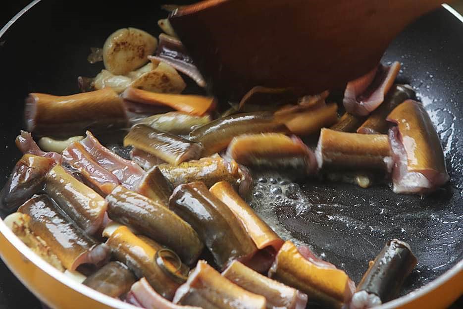 Bước 3: Cho lươn đã chiên vào nồi, thêm một lượng nước sôi vừa phải, đậy nắp nồi lại và bắt đầu đun sôi trên lửa lớn. Tiếp đó bạn hạ xuống mức lửa nhỏ, đun liu riu trong khoảng 20 phút. Trong quá trình hầm, bạn nên thêm chút muối, tiêu, gừng lát vừa đủ để tăng hương vị cho món ăn.