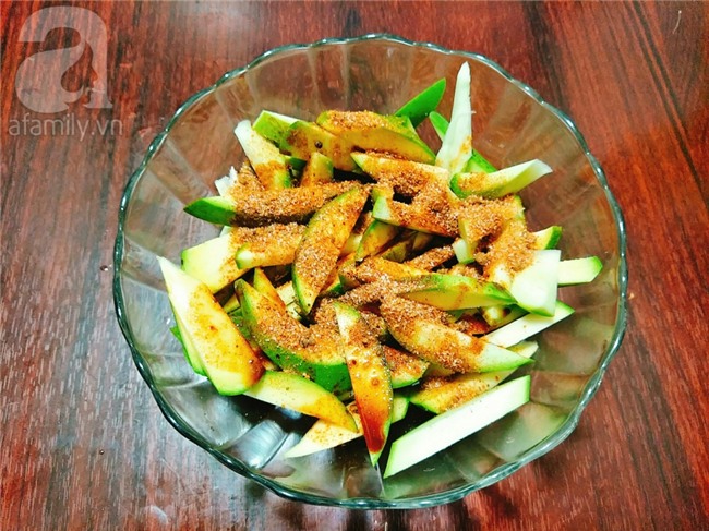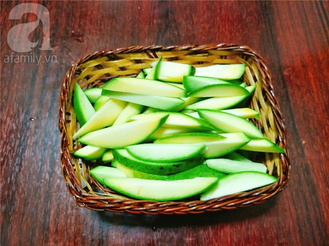 nước miếng rồi. Từng miếng xoài cay cay giòn giòn mà không hề chua ăn