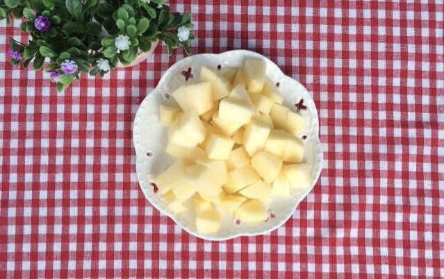 Bước 1: Ngâm táo trong nước muối loãng trước 20-30 phút để khử trùng, loại bỏ tạp chất. Sau đó gọt bỏ vỏ và lõi táo rồi cắt thành từng miếng bằng nhau.