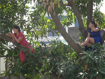 8h30 ngày 8/10, tại khu vực đường Nguyễn Văn Cừ (quận Long Biên, Hà Nội) xảy ra tắc nghẽn. Nguyên nhân do hai phụ nữ ở số nhà 64 Nguyễn Văn Cừ ngồi vắt vẻo trên cây muỗm trước cửa nhà ăn bánh mì và uống nước gây sự chú ý của người đi đường.