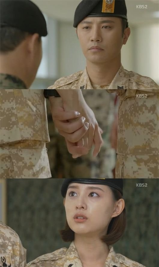 Cặp đôi có 2 phân cảnh khóa môi lãng mạn, kết thúc chuỗi ngày tán tỉnh nhau, Mo Yeon cũng không còn lẩn tránh Yoo Shi Jin mà chấp nhận để anh chinh phục. Một mối tình khác được khán giả chú ý không kém là của 2 quân nhân Dae Yeong (Jin Goo) - Myung Joo (Kim Ji Won) thuận lợi hơn khi họ được bố của Myung Joo chấp nhận hẹn hò.