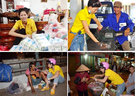 Trang Trần sẵn sàng rong ruổi khắp các con phố Sài Thành như một bác xe ôm đi trao quà cho những mảnh đời khốn khó |