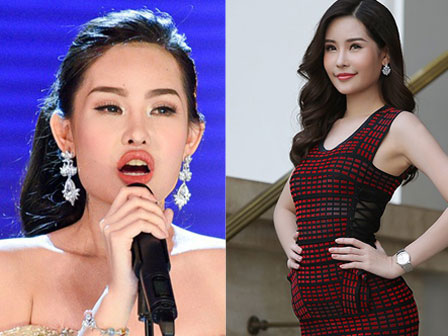 Khác hẳn với bờ môi sưng tều ngày đăng quang, hiện tại môi của Ngân Anh đã rất gọn gàng, nhẹ nhàng, thậm chí cô còn tô điểm cho bờ môi bằng cách tô son lòng môi chúm chím.