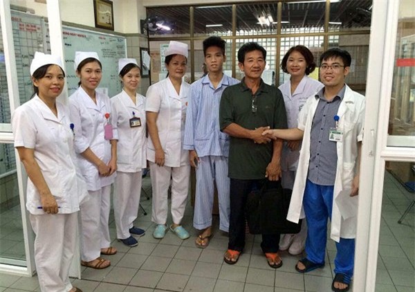 Cả PGĐ BV Ngô Quý Châu cùng BS Long, BS Tuấn khoa Ngoại và các điều dưỡng đều đến thăm để tiễn Châu ra viện. 2 cha con Châu rưng rưng nói lời cảm ơn mọi người. Nụ cười và cả những giọt nước mắt đã rơi...