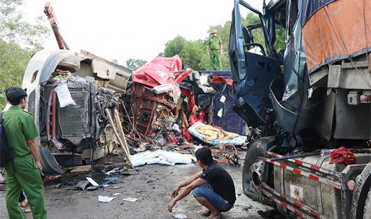Theo đó, xe container mang BKS 38C-110.38 kéo theo rơ-moóc 38R-000.55 di chuyển trên đường Hồ Chí Minh, khi đến địa điểm trên thì xảy ra va chạm với xe container BKS 12C-065.45 kéo theo rơ-moóc 12R-006.02.
