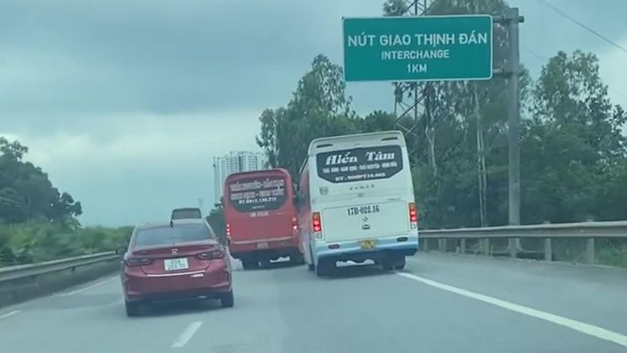Hai xe khách đánh võng, chèn ép nhau suốt một quãng đường dài trên cao tốc gây nguy hiểm cho hành khách ngồi trên xe và các xe khác chạy cùng tuyến đường.