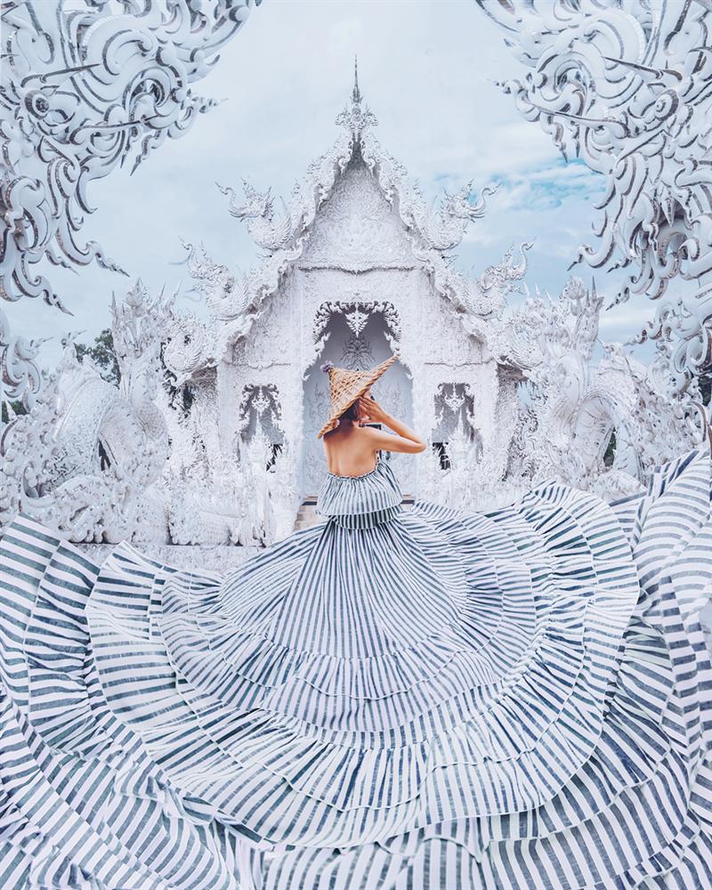 Cùng với tình yêu này, nữ nhiếp ảnh gia người Nga Kristina đã xách máy ảnh đi khắp nơi trên thế giới để thực hiện bộ sưu tập ảnh độc nhất vô nhị cùng với những chiếc đầm dạ hội. Những chiếc đầm lụa mềm bay phấp phới trong gió với màu sắc và họa tiết nổi bật khiến cho khung cảnh vốn nổi tiếng trên thế giới bỗng mang một màu sắc cổ tích lạ kỳ, đẹp đến ngỡ ngàng.