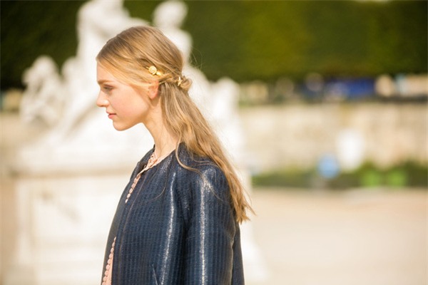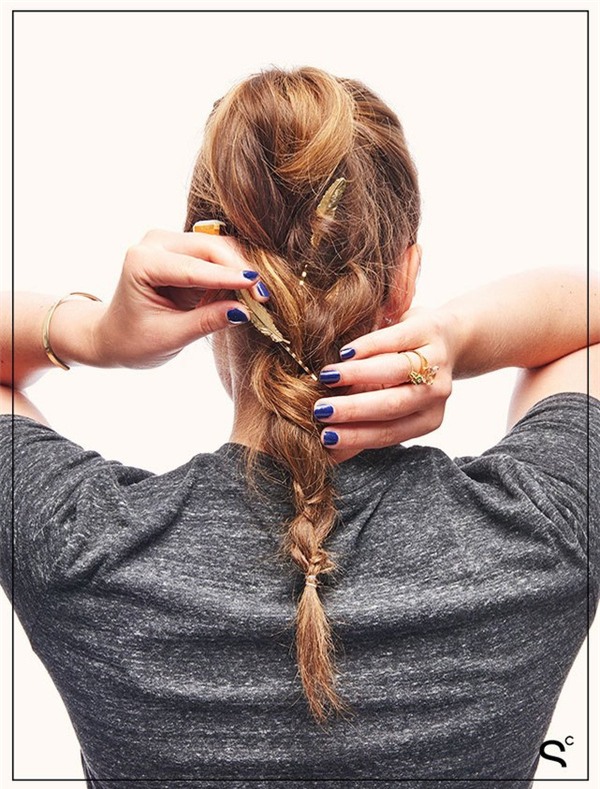 Những món phụ kiện nhỏ xinh mang sắc vàng kim hay bạc đều có thể "lột xác" cho những kiểu tóc đơn giản trở nên lộng lẫy bất ngờ. Đơn cử như với kiểu tóc này. Tất cả những gì bạn cần làm là lấy hai lọn tóc sát mang tai, xoắn nhẹ rồi vòng chúng ta đằng sau, cố định lại và tô điểm thêm những chiếc cặp xinh xắn.