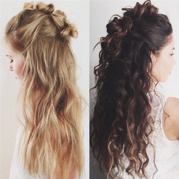 Kiểu tóc xoăn mang đậm âm hưởng boho với những búi tóc nhỏ xinh ngẫu hứng cũng là một gợi ý tuyệt vời dành cho những cô nàng cá tính, phóng khoáng.