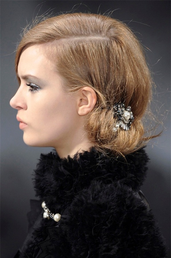 Ngoài băng đô, cặp tóc đính đá cũng là món phụ kiện tuyệt vời dành cho kiểu tóc búi thấp cổ điển mà sang chảnh.