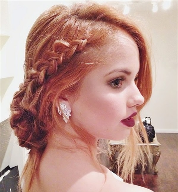 Trễ nải mà kiểu cách, yểu điệu mà tinh tế, kiểu tóc chia ngôi bên tết lọn nhỏ kết hợp với tóc búi thấp là gợi ý không thể chối từ đối với những cô nàng điệu đà. Tuy bản thân kiểu tóc này đã rất nổi bật nhưng bạn vẫn có thể khiến nó trở nên hút mắt hơn bội phần với phụ kiện khuyên tai statement.