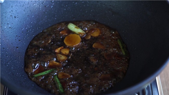 Đặt chảo lên bếp, cho dầu ăn vào, phi thơm và tỏi đầu hành. Tiếp tục cho hỗn hợp nước sốt vào nấu trong 2 phút.