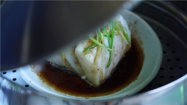 Khi cá chín tới thì mở vun ra, cho hỗn hợp nước sốt vào cá và đặt hành gừng gừng lên cá. Đậy vun lại hấp trong 2 phút nữa.