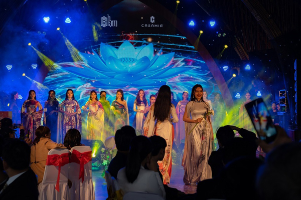 | Khách hàng tham dự chiêm ngưỡng BST áo dài “Chạm sắc - Chạm hương” của NTK nổi tiếng Việt Hùng |