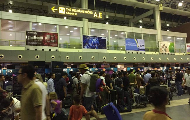 Sau khi hệ thống thông báo bay tại sân bay Nội Bài và Tân Sơn Nhất bị tin tặc tấn công, cơ quan chức năng đã tắt hệ thống mạng nội bộ khiến khâu làm thủ tục bay bị đình trệ, ùn ứ hành khách.