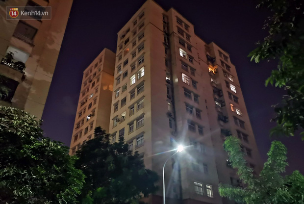 Người dân nhìn lên các tầng trên chỉ còn lác đác đèn của vài hộ dân cư.