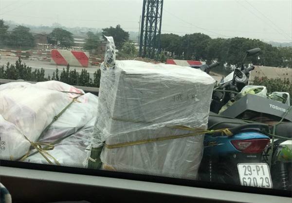 Nhiều chủ phương tiện ô tô tải nhận chở xe máy về các vùng quê cũng chịu chung cảnh ùn tắc kéo dài. (Ảnh Lê Bảo).