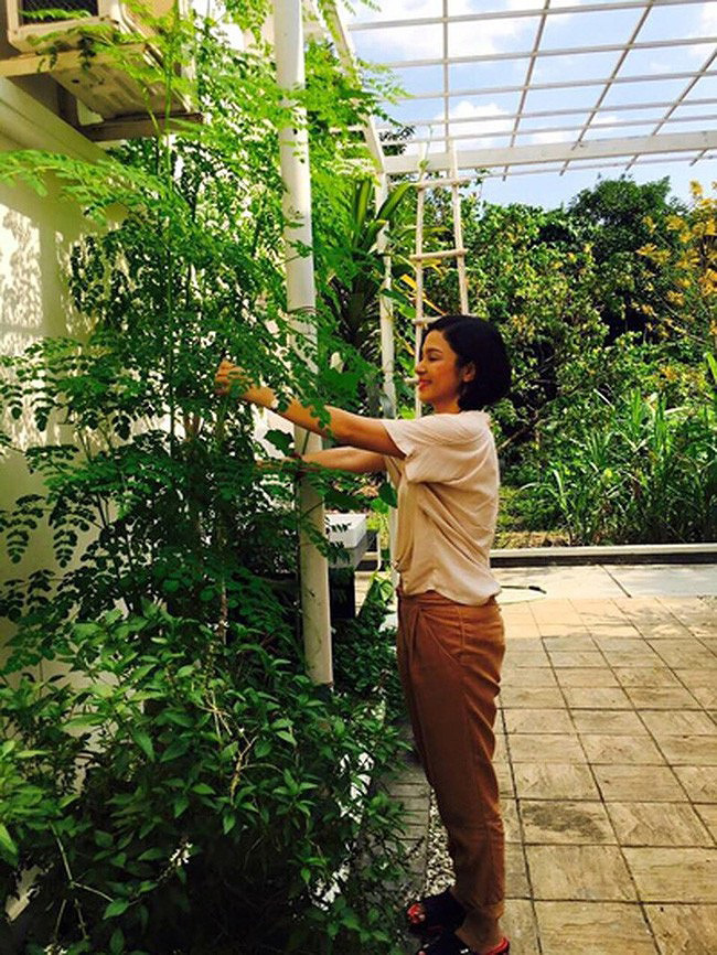 Thời gian rảnh cô hay chăm sóc cây cối trong vườn, vừa để thư giãn.