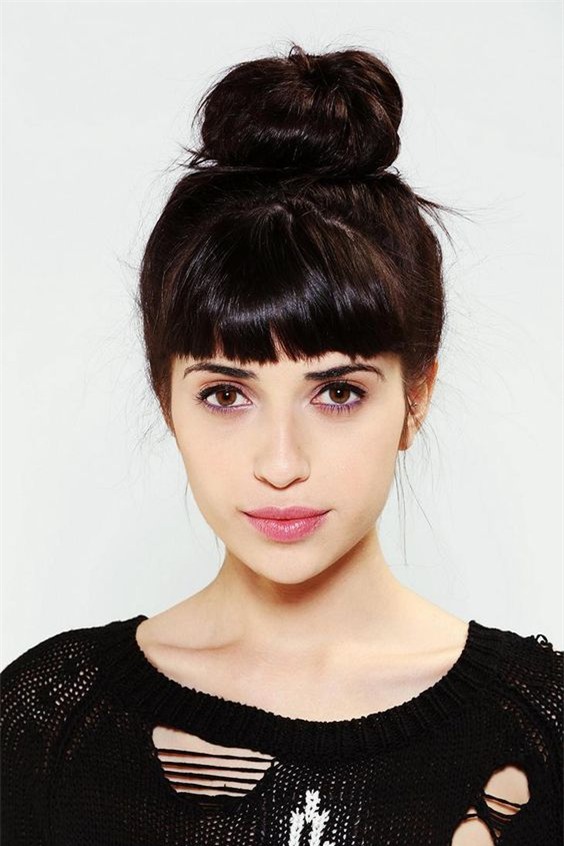trước trán lại tăng thêm nét ấn tượng và cá tính cho kiểu tóc búi đơn