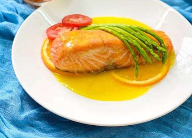 Cá hồi áp chảo sốt cam ngon, bổ dưỡng (Ảnh: thoidaiplus.suckhoedoisong.vn)