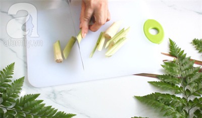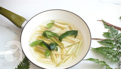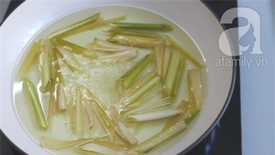 Đun nước + đường và sả trong 10-15 phút cho tinh chất sả ra mùi thơm.