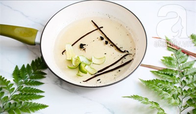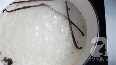 Đun nước + đường và vanila trong 10-15 phút cho tinh chất vanila ra mùi thơm.