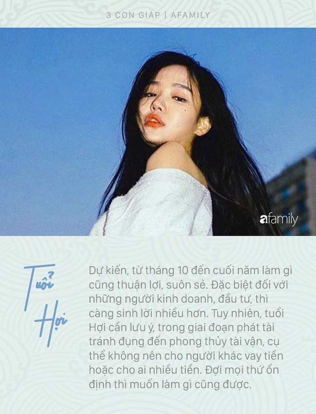 Tuy nhiên, tuổi Hợi cần lưu ý, trong giai đoạn phát tài tránh đụng đến phong thủy tài vận, cụ thể không nên cho người khác vay tiền hoặc cho ai nhiều tiền. Đợi mọi thứ ổn định thì muốn làm gì cũng được. Nhớ nhé!