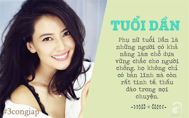 Phụ nữ tuổi Dần sở hữu tính cách rất rõ ràng, họ luôn thẳng thắn trong mọi chuyện, đôi khi có lúc làm mích lòng người khác nhưng sau đó bằng sự tinh tế của mình, họ cũng đã giúp đối phương nhận ra sai làm và mọi khó khăn đều được giải quyết. Sau khi kết hôn, tuổi Dần lại càng hiểu chuyện và sâu sắc hơn. Họ luôn tâm niệm rằng, gia đình phải yên ổn thì mọi thứ mới có thể tốt đẹp.