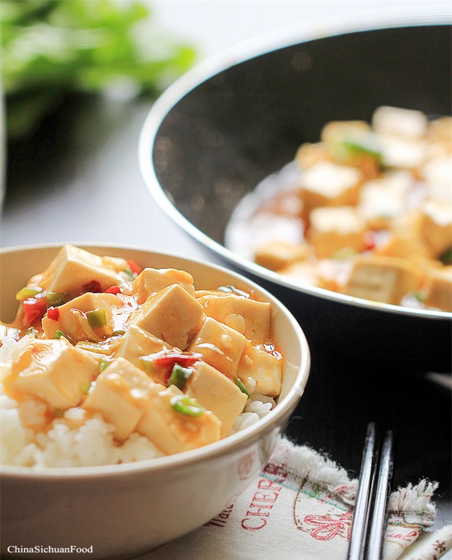 - Rưới sốt lên đậu phụ, trang trí với ngò rồi ăn ngay.