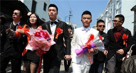 Lần đầu tiên ở huyện Đông Hoan, tỉnh Phúc Kiến, có một đám cưới đồng tính diễn ra công khai. Sự kiện này đã thu hút hàng ngàn người hiếu kỳ, gây chấn động cả Trung Quốc.