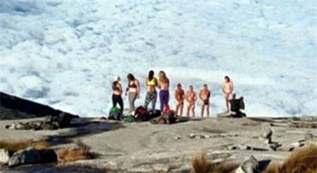 Bức ảnh với nội dung “gây sốc cho cư dân phượt" cho thấy trong ánh nắng chói chang, 3 du khách dùng tay che "chỗ hiểm" và tươi cười rất thoải mái.