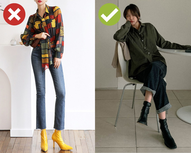 Quần jeans không phải là một item điệu đà, ủy mị, do đó sẽ không dễ để song hành với những kiểu giày dép diêm dúa, chẳng hạn như những đôi giày được thêu đính lồng lộn, cầu kỳ. Sự kết hợp của kiểu quần bụi bặm, đậm chất street style với một đôi giày siêu cấp nữ tính, được đính đá, gắn hạt kim sa… chỉ mang đến sự lạc điệu cho tổng thể, thậm chí có thể biến vẻ ngoài của bạn trở nên quê kiểng, sến súa.